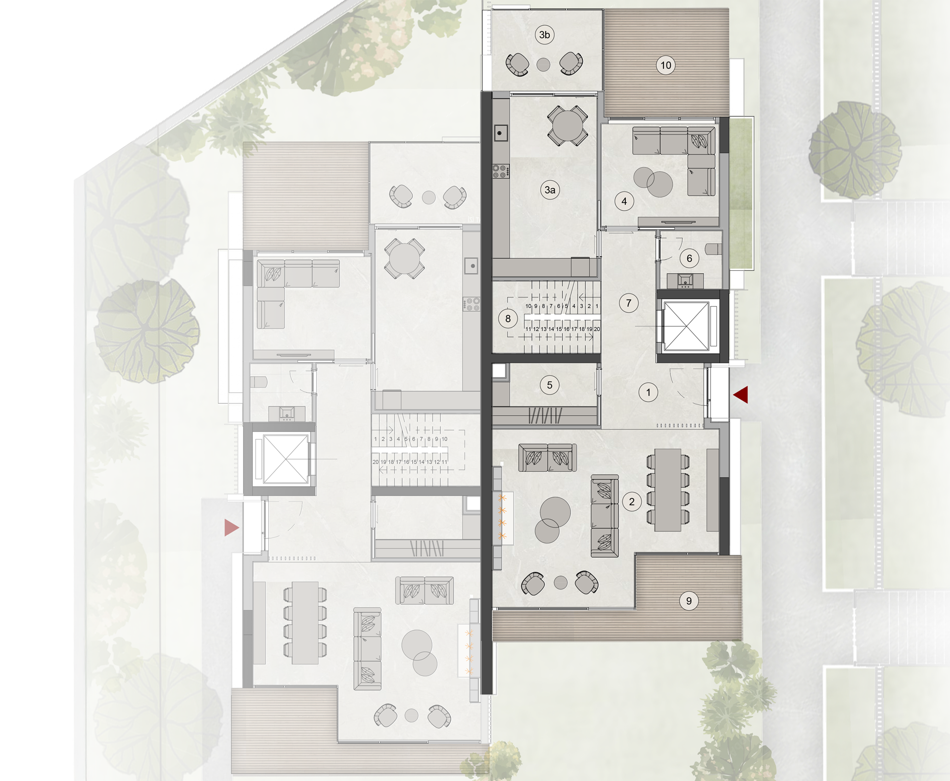B Tipi Villa modern mimari dili, dengeli plan kurgusu ve ferah iç hacmiyle aile yaşamına güçlü bir uyum sağlar.